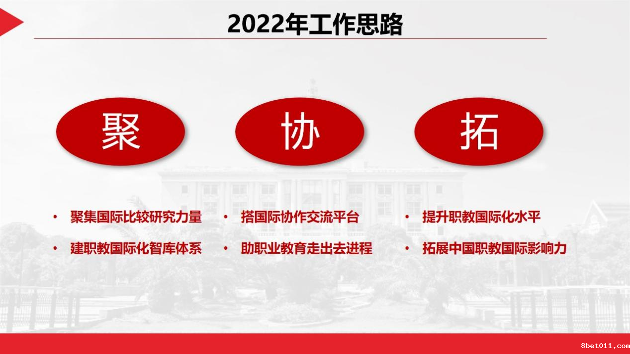 ●聚研究力量,建设有国际影响力的智库体系。国际工委将依托现有全球教育比较研究团队,联合各职教所和各会员单位的国际化研究资源,打造研究平台,构建职教国际化智库体系。