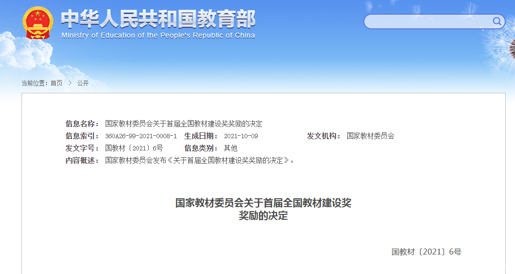 全国教材建设奖是教材建设中的一项重大制度设计,充分体现了党中央国务院对教材工作的高度重视,为建设高质量教材体系提供了重要抓手和保障。在国家教材委统筹、教育部党组领导、教材局的支持下,成立了由鲁昕会长担任主任委员的评审委员会。经过网络评审、会议分组评审、评审委员会综合评议和投票表决,共确定奖励教材400项,教材工作委员会有45家会员单位编写和出版的教材获奖。