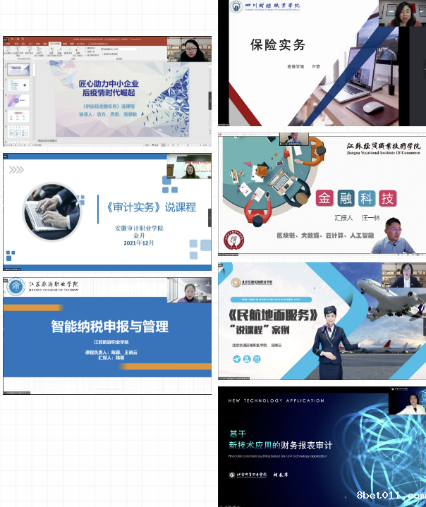 湖南现代物流职业技术学院袁方、周密、唐慧敏,安徽审计职业学院金升,江苏旅游职业学院陈蓉、王晓云,四川财经职业学院许静,江苏经贸职业技术学院汪一林,北京交通运输职业学院段晓云,北京财贸职业学院胡春萍等7名课程负责人,分别展示了供应链金融实务、审计实务、智能纳税申报与管理、保险实务、金融科技、民航地面服务、基于新技术应用的财务报表审计等课程建设案例。