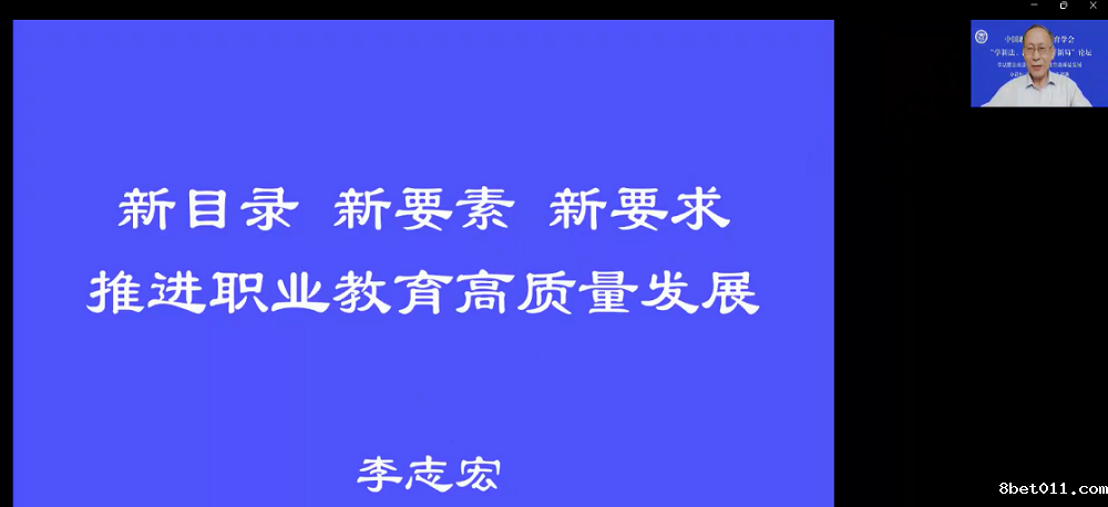 李志宏作题为《新目录、新要素、新要求,推进职业教育高质量发展》的报告,阐述了新版专业目录新在何处、职教本科目录特点、落实新版目录需要注意的问题,以及国家教学标准与高质量发展的有机联系。他表示,新法对修订专业目录,完善落实职业教育教学标准提出了新要求。如何以目录和国家教学标准为基本遵循,推进职业教育高质量发展,是职教战线面临的重要任务。