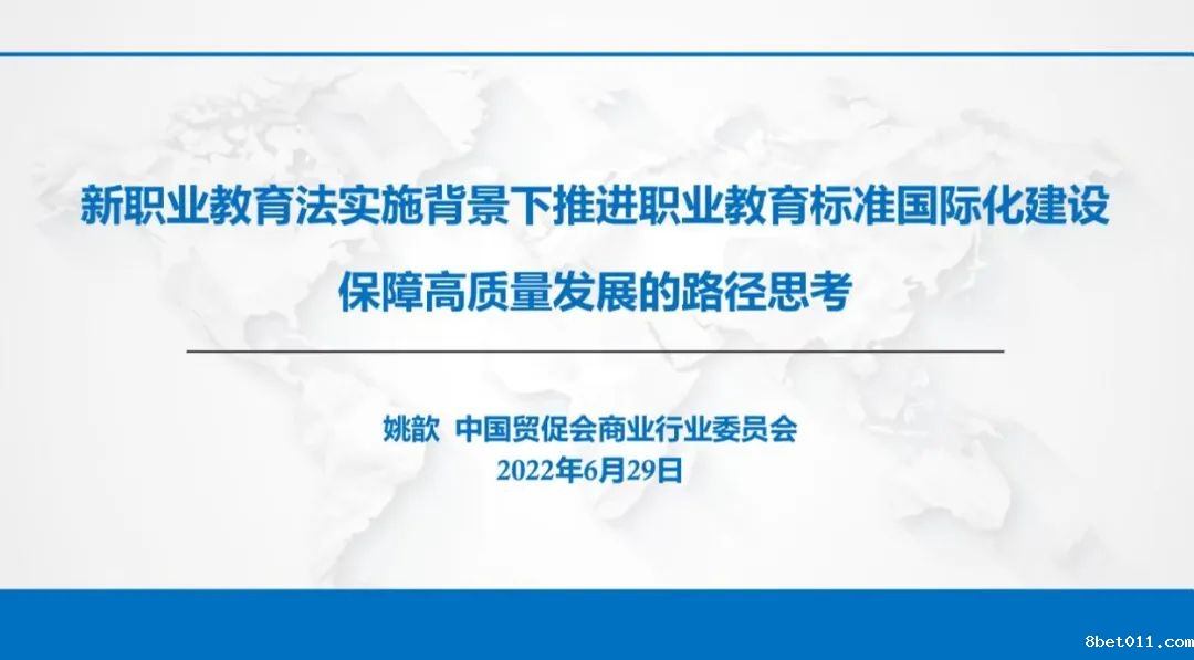 中国贸促会商业行业委员会秘书长、全国普通高校毕业生就业创业指导委员会委员姚歆作报告,从什么是标准、职业教育标准包括什么、如何推动标准的国际化等三个问题切入,结合实际案例提出了职业院校在职教标准国际化的道路上大有可为。