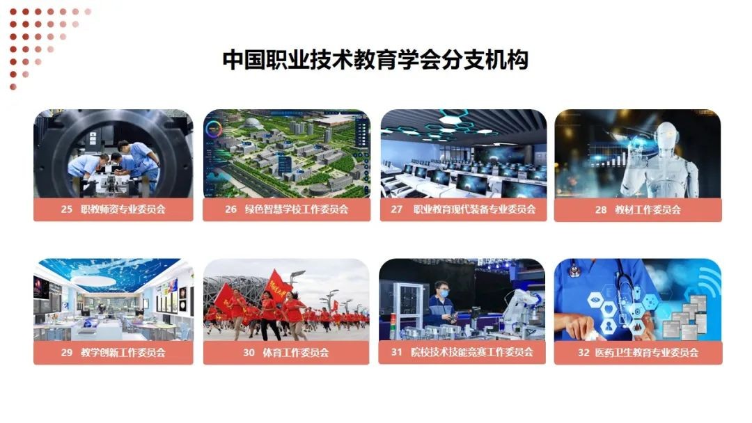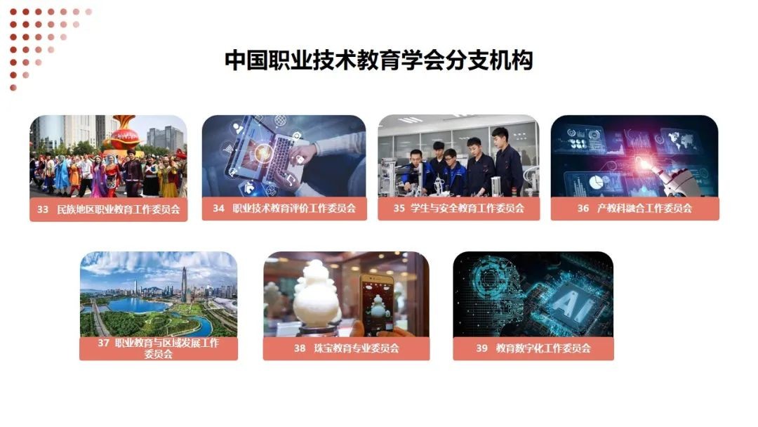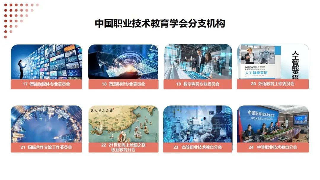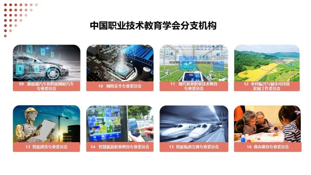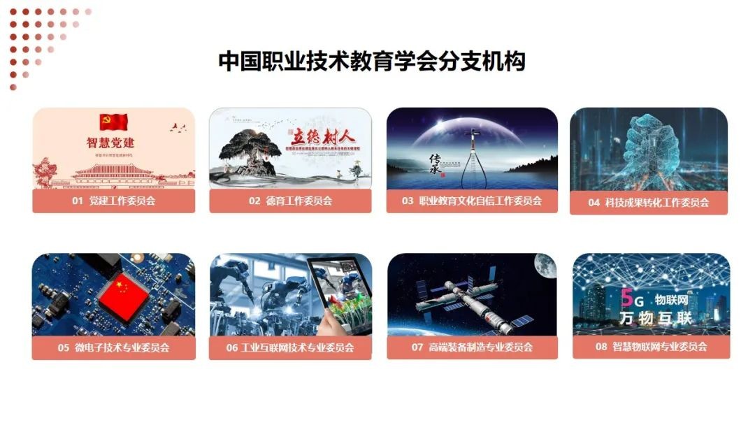 经过调整,学会现有39家分支机构,已形成“党建引领、科技支撑、文化铸魂”的协同发展格局,即以党建工作委员会、德育工作委员会为引领,以科技成果转化工作委员会、微电子技术专业委员会、智能轨道交通专业委员会、智慧物联网专业委员会、高端装备制造专业委员会、工业互联网技术专业委员会、网络安全专业委员会、新能源与智能网联汽车专业委员会、智能建造专业委员会、现代农业职业技术教育专业委员会、智慧财经专业委员会、智能融媒体专业委员会等新技术平台为支撑,职业教育文化自信工作委员会固本铸魂。