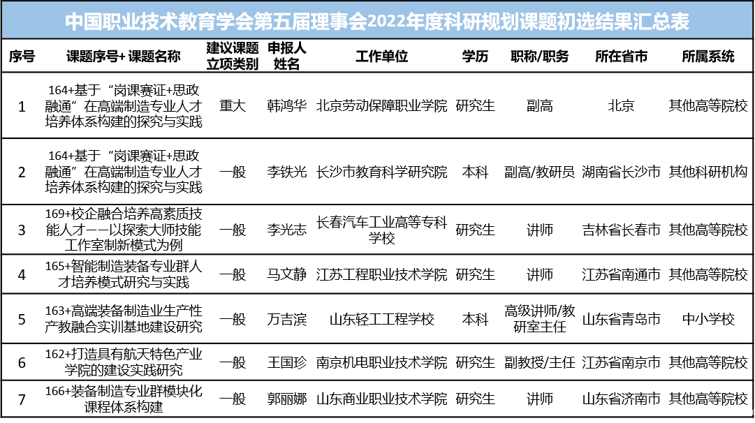 高装委坚持执行学会以课题组织工作为抓手,深入实践学术立会的宗旨,2022年围绕高端装备制造行业人才培养与教育、专业及专业圈建设、实训基地(实训室)的建设与应用等方面,征集科研课题,共收到课题近50份,“基于“岗课赛证+思政融通”在高端制造专业人才培养体系构建的探究与实践”、“智能制造装备专业群人才培养模式研究与实践”等7项课题,均已通过学会审核。