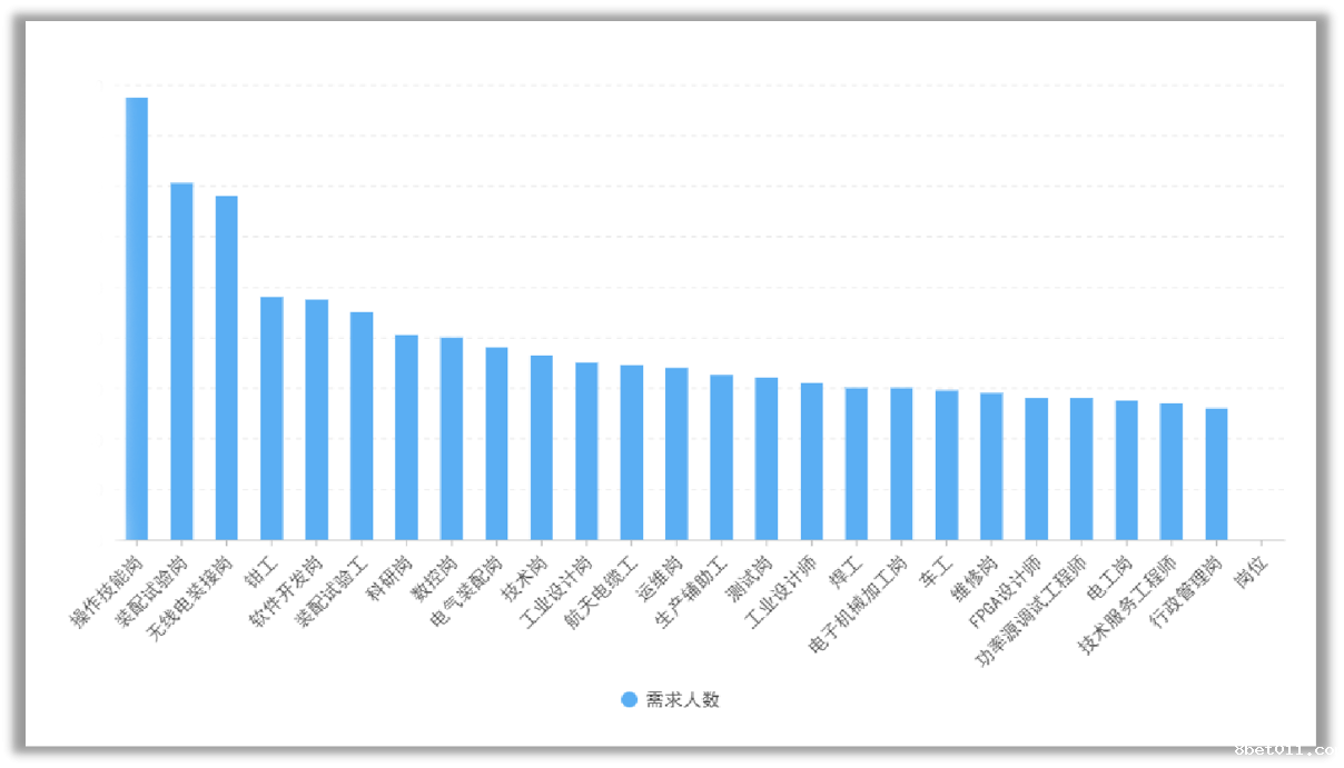 技术技能人才是支撑中国制造、中国创造的重要力量,提高职业技能是促进中国制造和服务迈向中高端的重要基础,技能型人才培养的方向和前提是企业的岗位需求,为此高装委2022年针对高端装备制造业100余家企业开展了人才需求调研工作,其中30余家重点企业数据显示,50个人以上需求的重点岗位25个,包括操作技能岗、装配试验岗、无线电装接岗、钳工、软件开发岗、装配试验工等岗位。由此可见,随着我国发展质量效率提高、经济结构不断调整、产业转型升级,对高技能人才的需求将日益旺盛。此次调研是高装委开展校企合作、培养方案制定、课程开发以及实训室建设的有力依据。