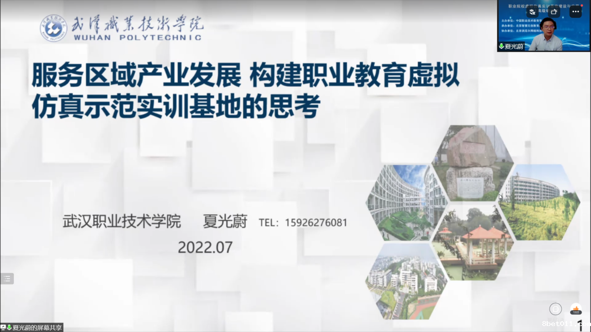 武汉职业技术学院教务处处长、华中科技大学教育科学研究院教育博士夏光蔚副教授作了“服务区域产业发展,构建职业教育虚拟仿真示范实训基地的思考”的报告。报告指出职业教育虚拟仿真示范实训基地建设项目是通过“虚实结合”实现实训教学手段和教学模式的多元化,拓宽学生的学习途径,促进高职院校的人才供应、技术创新和服务供给真正融入企业生产进程,从而紧跟装备制造数字化、网络化、智能化的发展趋势。报告将以从虚拟仿真建设理念,具体项目建设的思路、方法、内容等方面介绍虚拟仿真实训基地开展建设的思路、方法、成果及建议等以供交流学习。